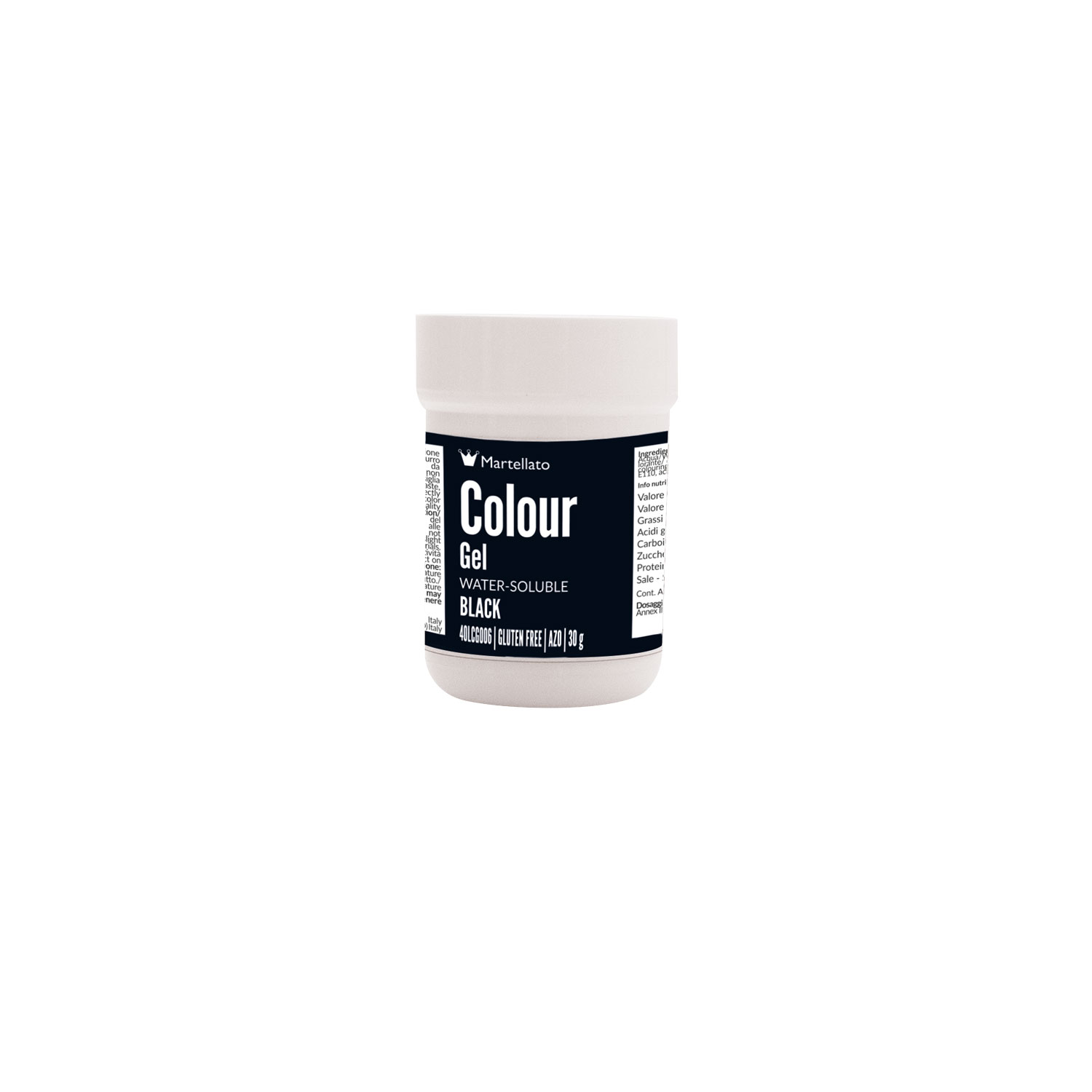 Colorante en gel concentrado soluble en agua, de color negro. Ideal para la decoración en masa de todos los productos o emulsiones a base de agua como pasta de azúcar, nata, crema de mantequilla, glaseado y diversas masas como galletas y merengues.