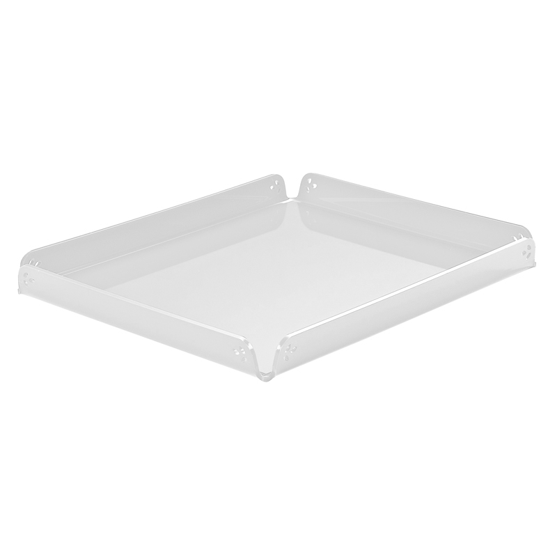 Bandeja de plexiglás con pequeña decoración, utilizable como centro de mesa de líneas limpias y minimalistas o para servir sus creaciones. Disponible en blanco y negro. A petición se puede personalizar el color y el tamaño.