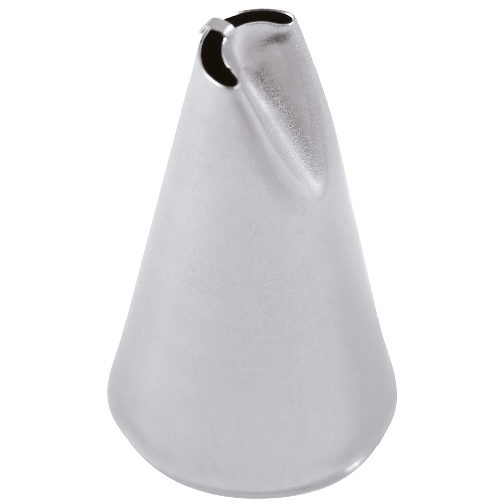 Boquilla de acero inoxidable para manga pastelera o manga pastelera con forma especial. Esta boquilla no tiene costuras, lo que garantiza una descarga uniforme del producto y una gran resistencia.