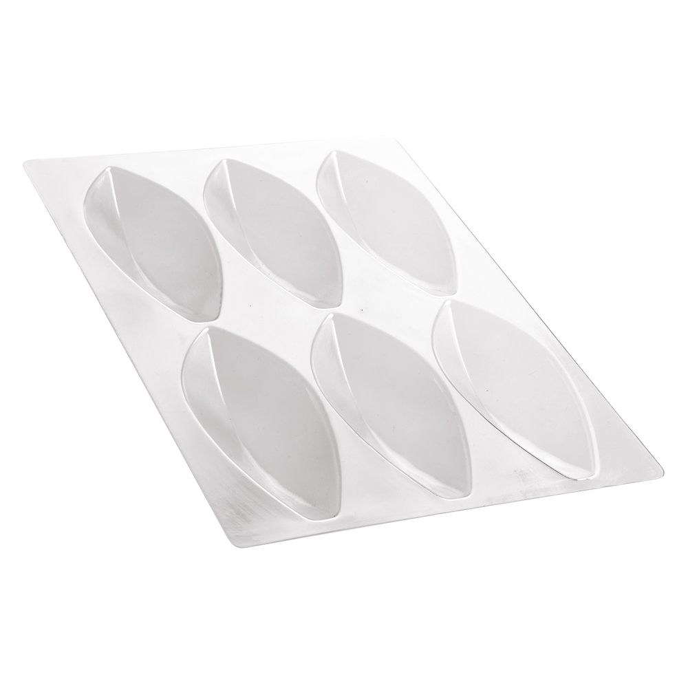 Cada juego de moldes para flores de loto en chocolate incluye un molde en forma de semiesfera y 4 moldes para la realización de 6 pétalos. Una vez que se ha dado la vuelta, la semiesfera se puede utilizar como base para colocar la flor.